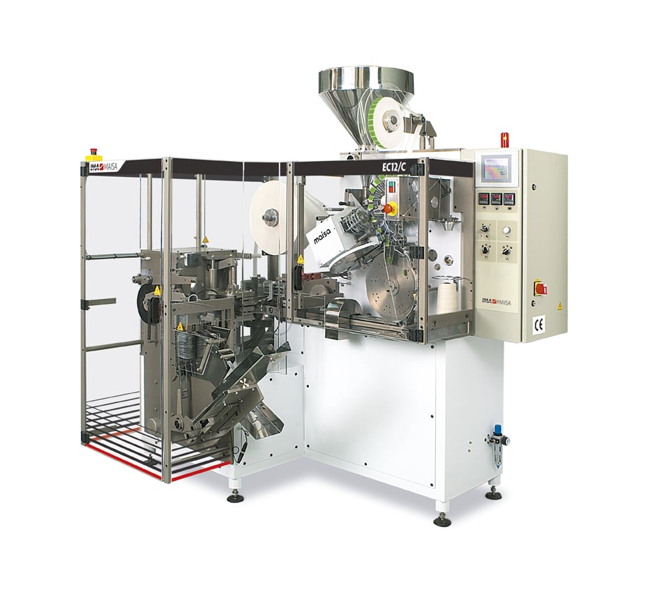 The EC12 Series is a range of versatile, flexible and reliable machines equipped for the single chamber teabag packaging by IMA Maisa.