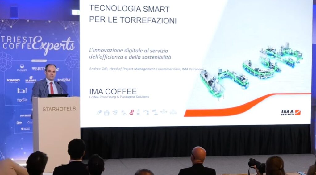 During the conference, Andrea Gilli, AfterSales and Project Management Director at IMA Petroncini, outlined the transformation of coffee roasting from historically manual operations to fully automated and connected processes.
