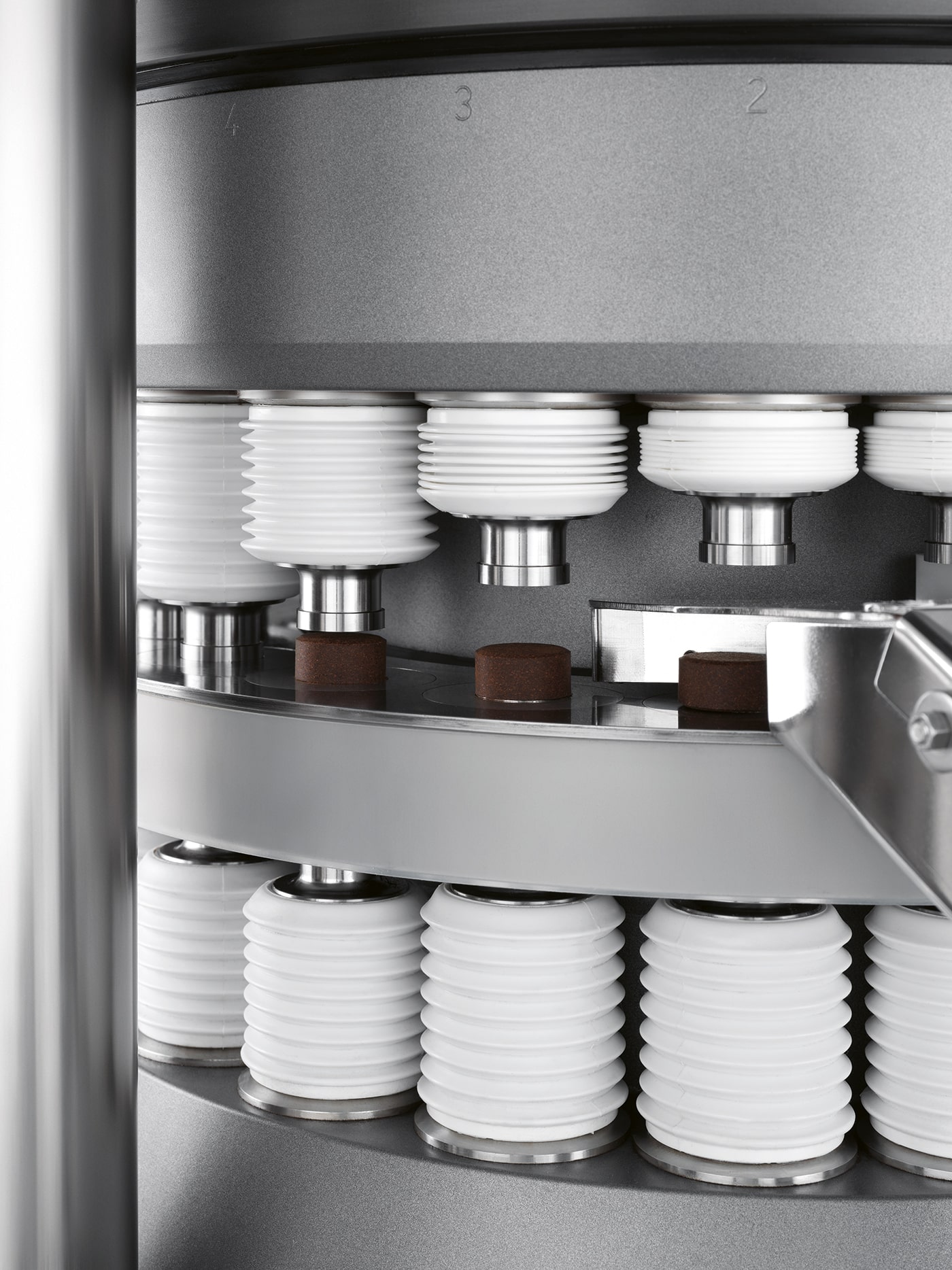 PREXIMA can process a wide range of tablet shapes and sizes on the same machine, making it ideal for the coffee industry. Simply replace compression tooling to change to a different size of the same product or to a different design to enhance marketing differentiation. Dedicated solutions are available for efficient and successful coffee tablets production.