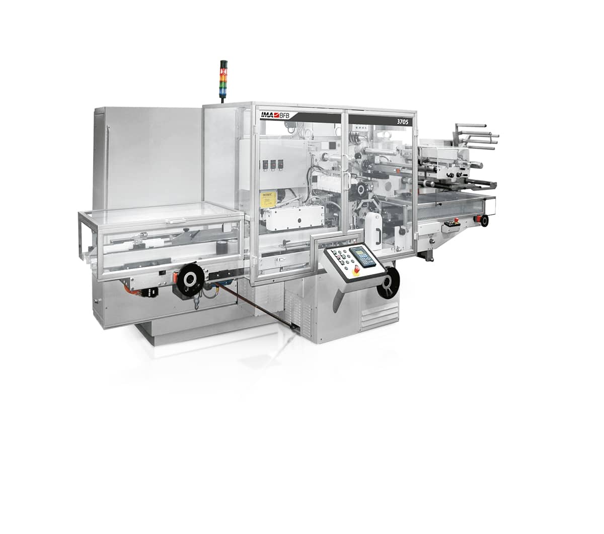 Over wrapping for parallelepiped cosmetic and toiletry items, the 3705 is a high-speed machine for individual and/or multiple product packs on one layer, using cellophane, PVC, PP and all other reel-fed, heat-sealable films.