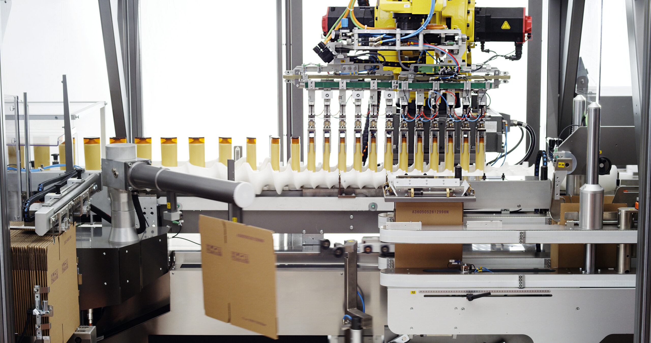 Designed specifically to handle loose or bundled bottles, even with unusual shapes, this servo driven, top loading case packer benefits from excellent ergonomics, ensures top-level output and can manage two cases simultaneously.
