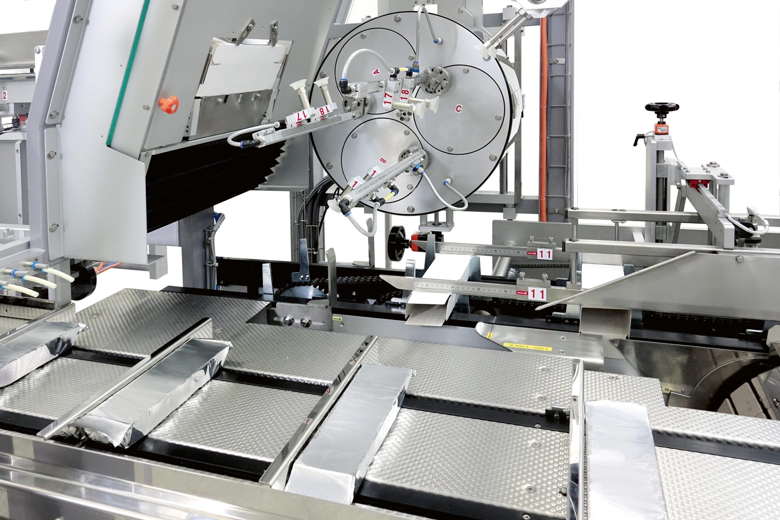 A 3-head rotary feeder with pre break provides optimal carton placement while the continuous introduction system with barrel loader offers the best solution to handle and gently introduce flowpack bars into the carton with the upmost precision and quality result.