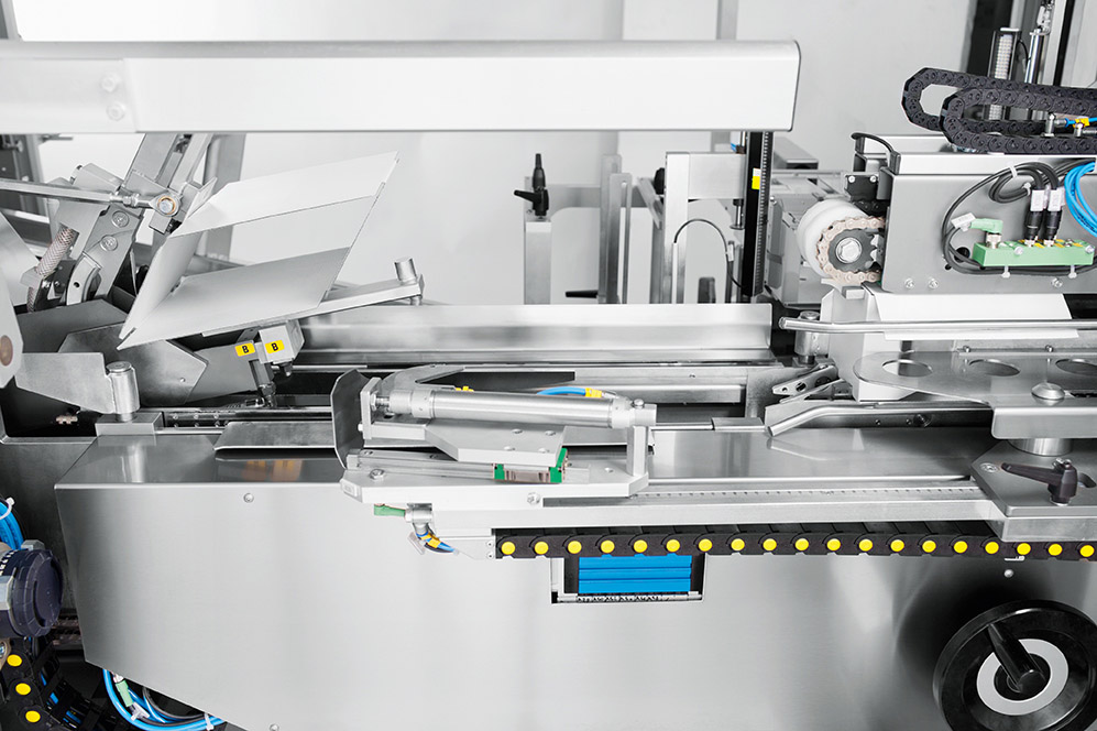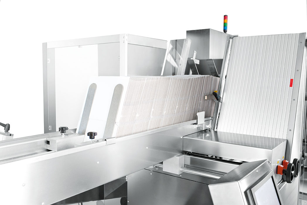 The case erecting mechanism now ensures extremely low positioning of the horizontal case magazine, thus increasing machine autonomy.