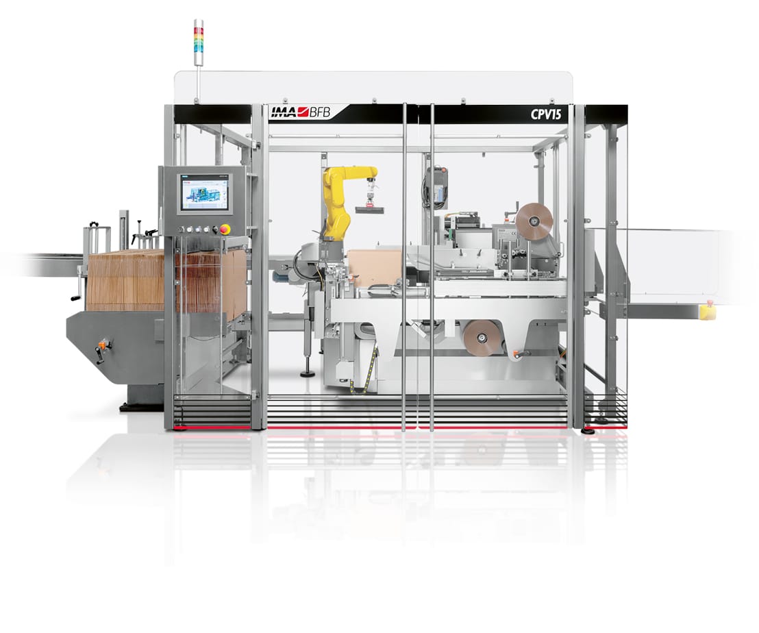 A medium-output, top loading case packer for loose or bundled products, the CPV15 has been conceived to assure maximum ergonomics for operating staff and guarantee smooth handling even for unusually shaped products thanks to servo technology.