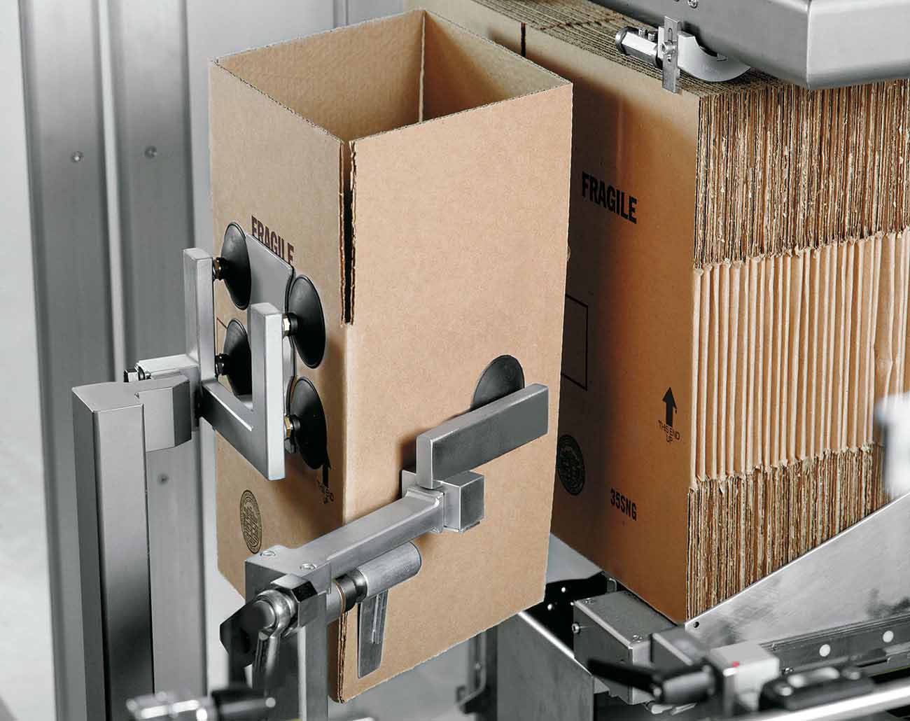 In order to be as operator-friendly as possible, the case erecting mechanism is designed to ensure low positioning of the horizontal case magazine, which also ensures increased autonomy. Machine parts can be reached without operators needing to move from one side of the machine to the other.