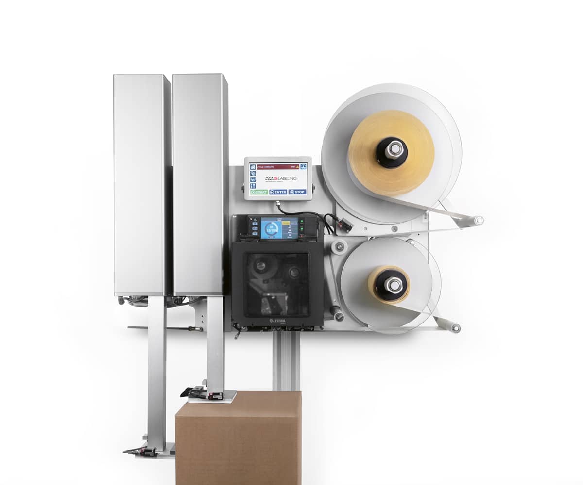 A real time print & apply system for corner-wrap applications, typically used for secondary packaging and perfect for pharmaceutical aggregation processes.