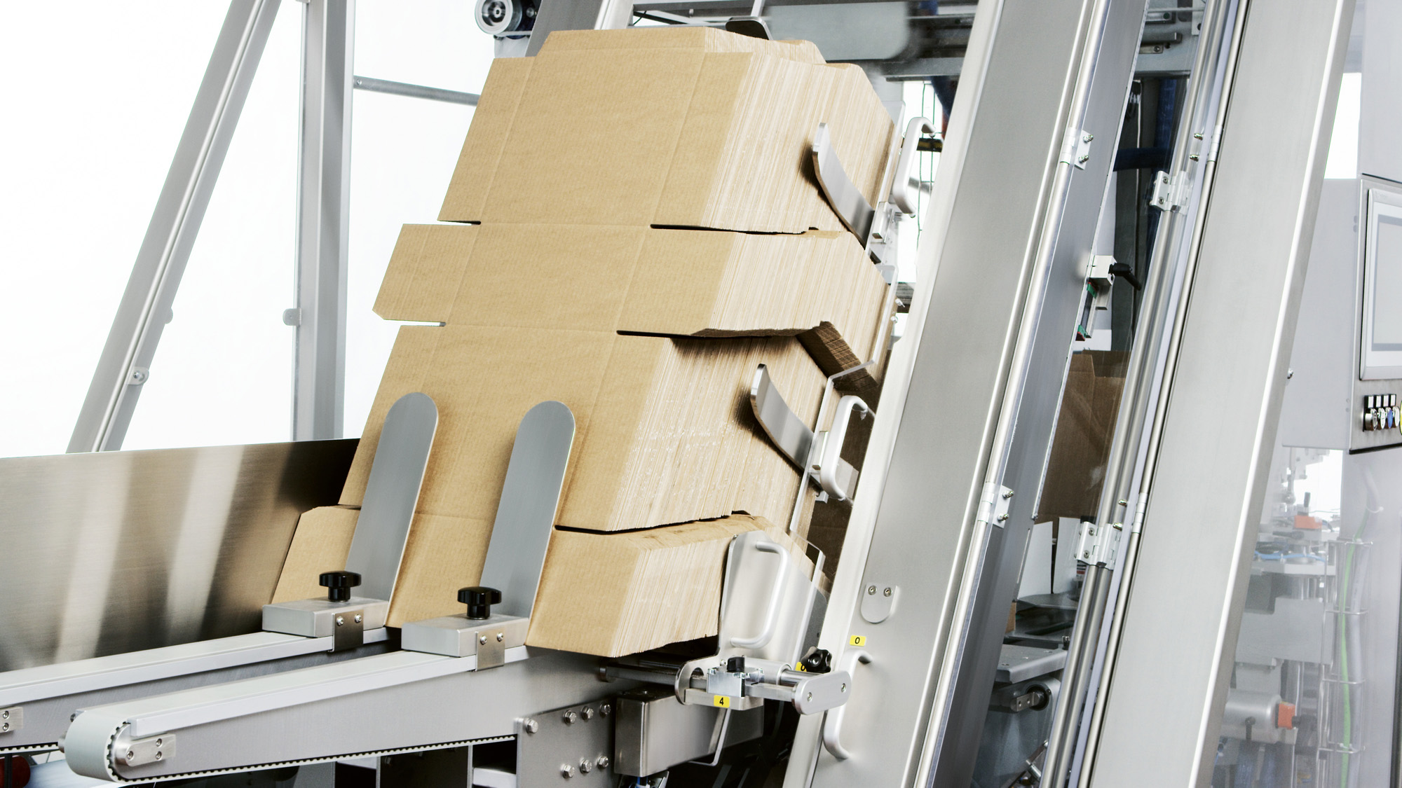 Ergonomically positioned components help to significantly improve operator intervention and thanks to a newly designed case erection mechanism, the horizontal case magazine is as low as possible to achieve increased autonomy. Cases are erected and held in position on two sides during loading.