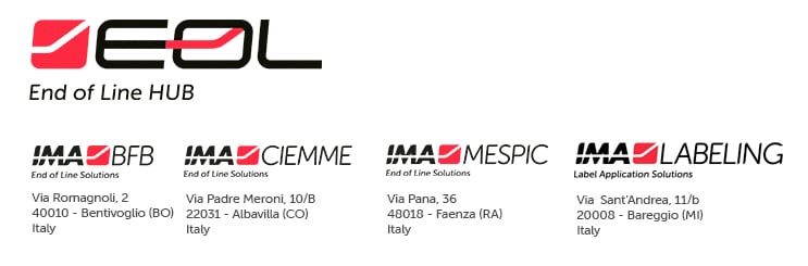 The IMA END OF LINE hub is made up of companies that have developed a variety of technologies that enter into play along all packaging lines. Each company contributes with specific expertise to deliver the most complete technological offering of manipulation, horizontal cartoning, carton forming loading and closing, overwrapping, stretch banding, shrink wrapping, case packing, palletizing, de-palletizing and labelling solutions.