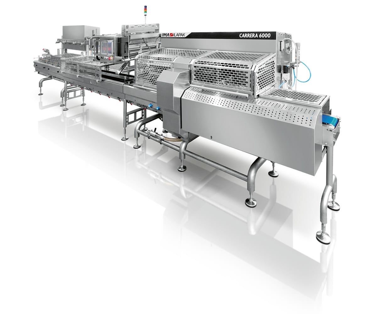 The IMA Ilapak’s Carrera 6000 is a fully modular design flow wrapping machine that offers complete IP65 protection, enabling full wash-down capability, even of the sealing elements. The ultra-hygienic design of IP65 version has been achieved through full stainless steel execution, isolating the electrical cabinet from the main machine frame and smooth, angled surfaced without recesses.