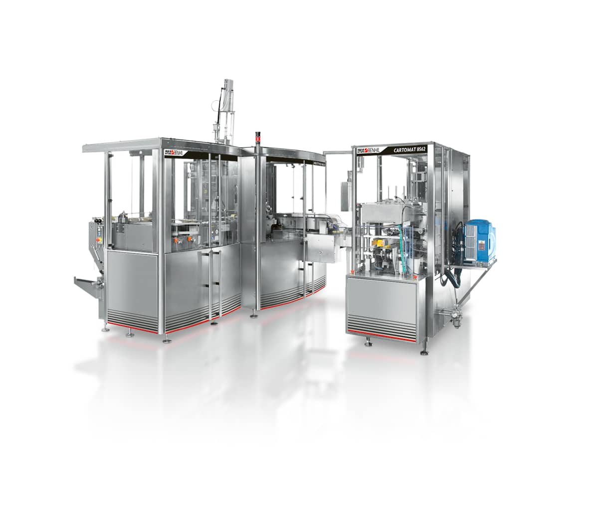 The MULTIPACK 8600 can works in line with the CARTOMAT 8562/8563, which is a fully automatic wrap-around cartoner for consumer portions with carton closing by hot melt (inserted flaps or gluing all around types).