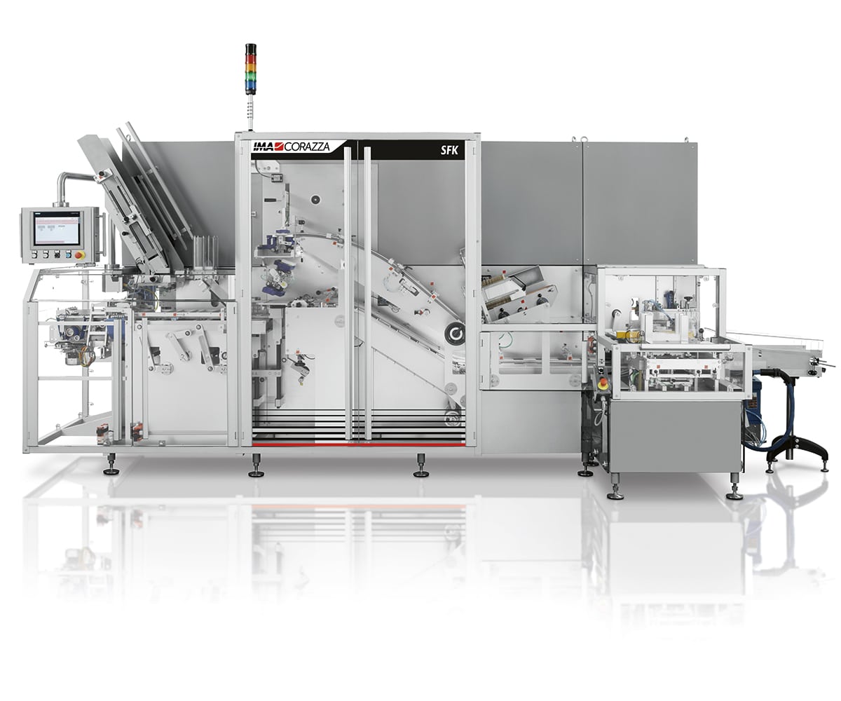 The SFK series of tray forming and sleeving machine is able to handle square and rectangular portions of cheese in any shapes, reaching a speed of up to 120 ppm