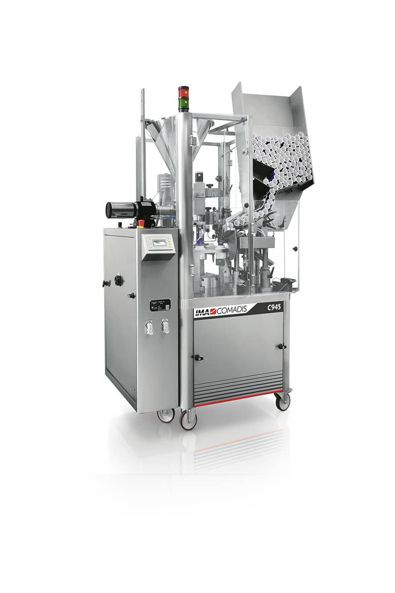 The smallest tubefiller on the market, marked by outstanding flexibility. Dosing pump is easy to reposition outside footprint for manual filling; interchangeable closing heads perform any type of metal tube folding and a variety of plastic tube sealing shapes.
