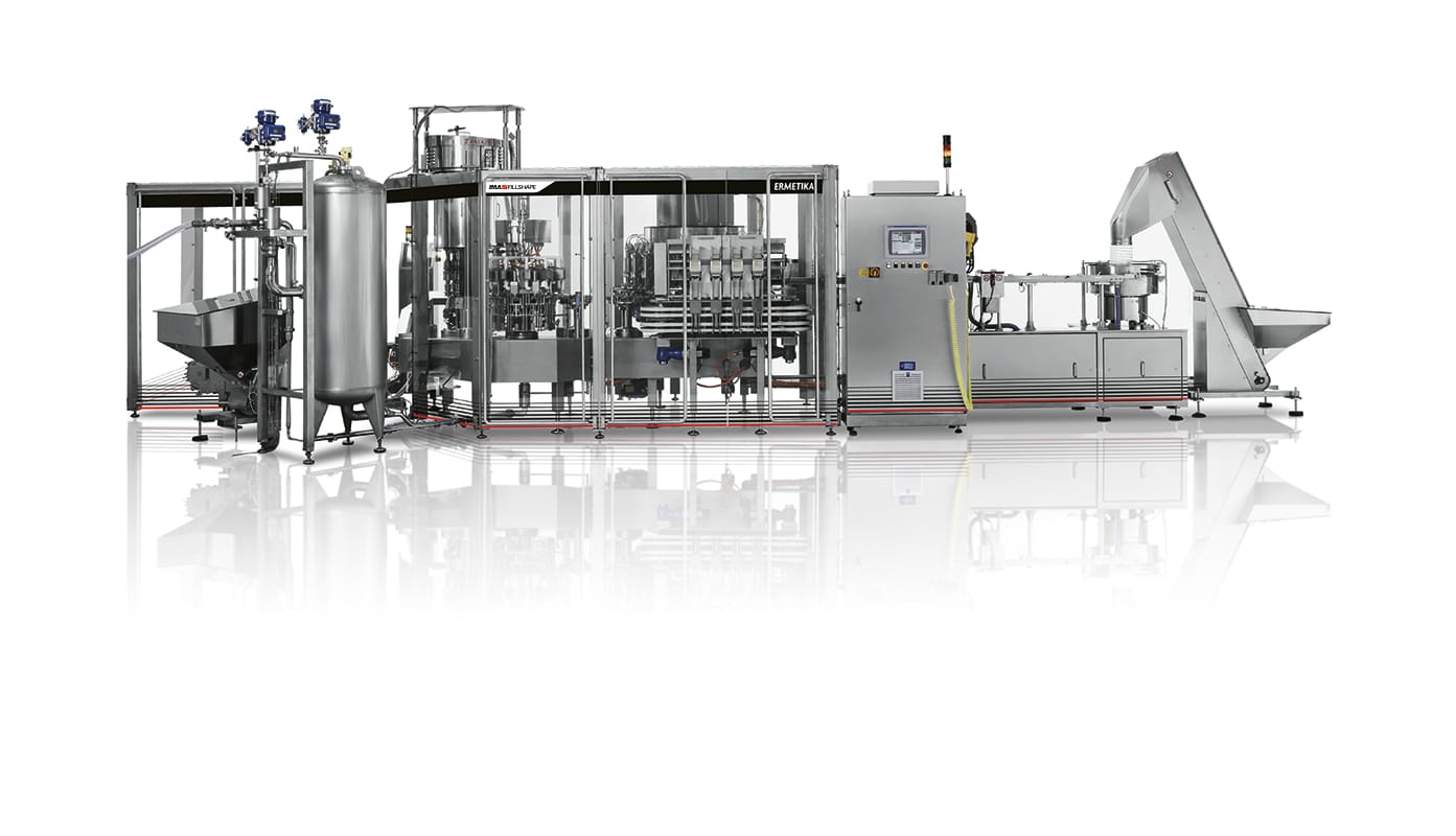 Ermetika is a high-speed, continuous motion rotary machine assembling, filling and sealing spouts and premade pouches in a wide variety of shapes and sizes. High efficiency and premium quality results for countless products typical of the food and dairy market