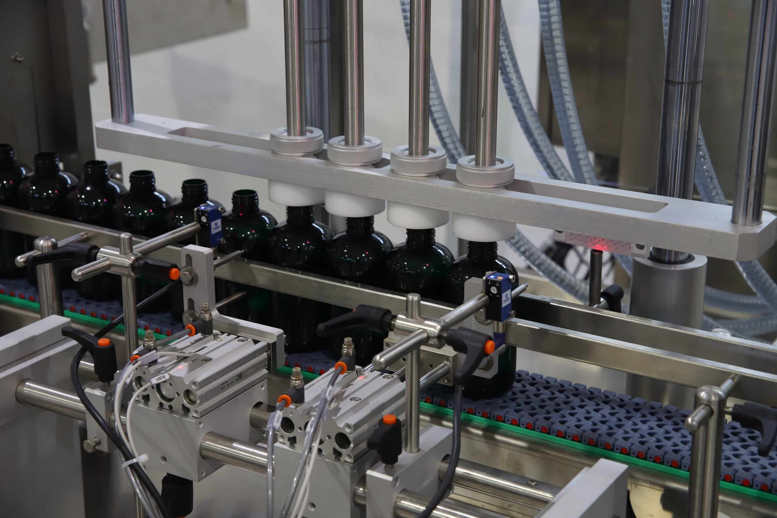 In line filler from 2 to 12 lanes for liquid, viscous and creamy proucts as well as hot filling. Possibility to install a removable docking filling station for quick product changeover or for easy cleaning operations. The line can be equipped with automatic capping monobloc G-KAP or GRC-KAP series or LINE-KAP depending on speed.