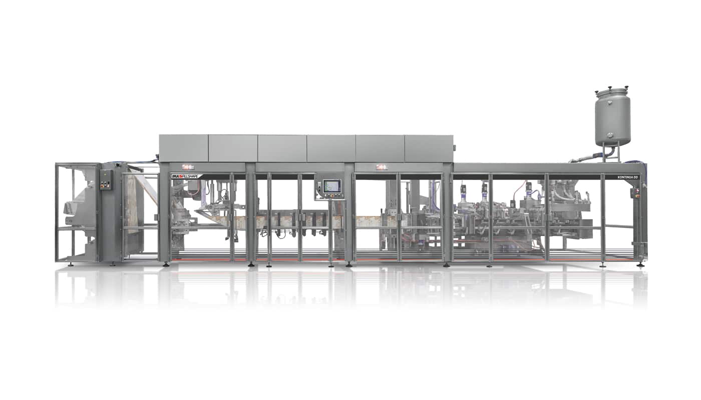 Innovative high-speed stand up Doypacks machine with a unique duel motion system composed of an intermittent module for pouch forming and fitments application, combined with a continuous motion filling unit.
