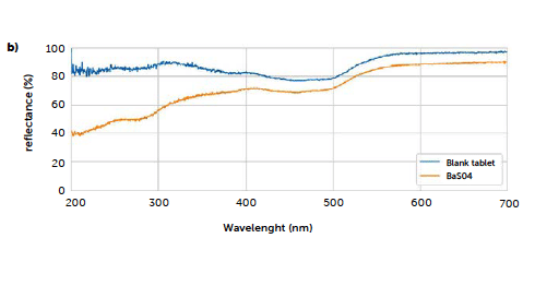 Figure 5: comparison of the UV–Vis reflectance baseline obtained with a blank tablet and the standard BaSO4.