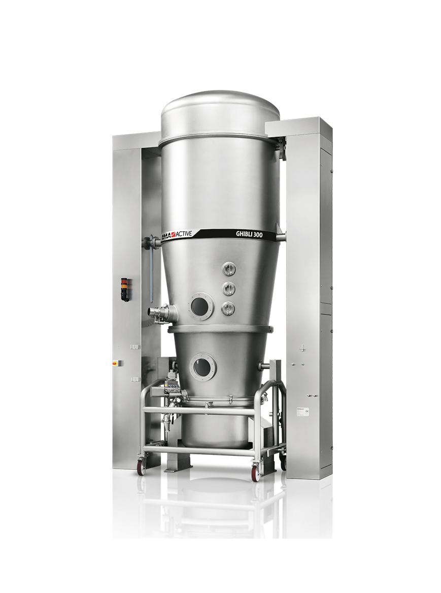 Premium quality engineering is the hallmark of IMA Active’s fluid bed processor. Thanks to its smart design for filter inspection and filter change, GHIBLI ensures maximum efficiency in drying, granulation and pellet coating.