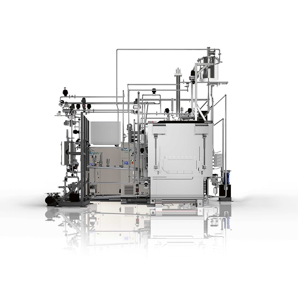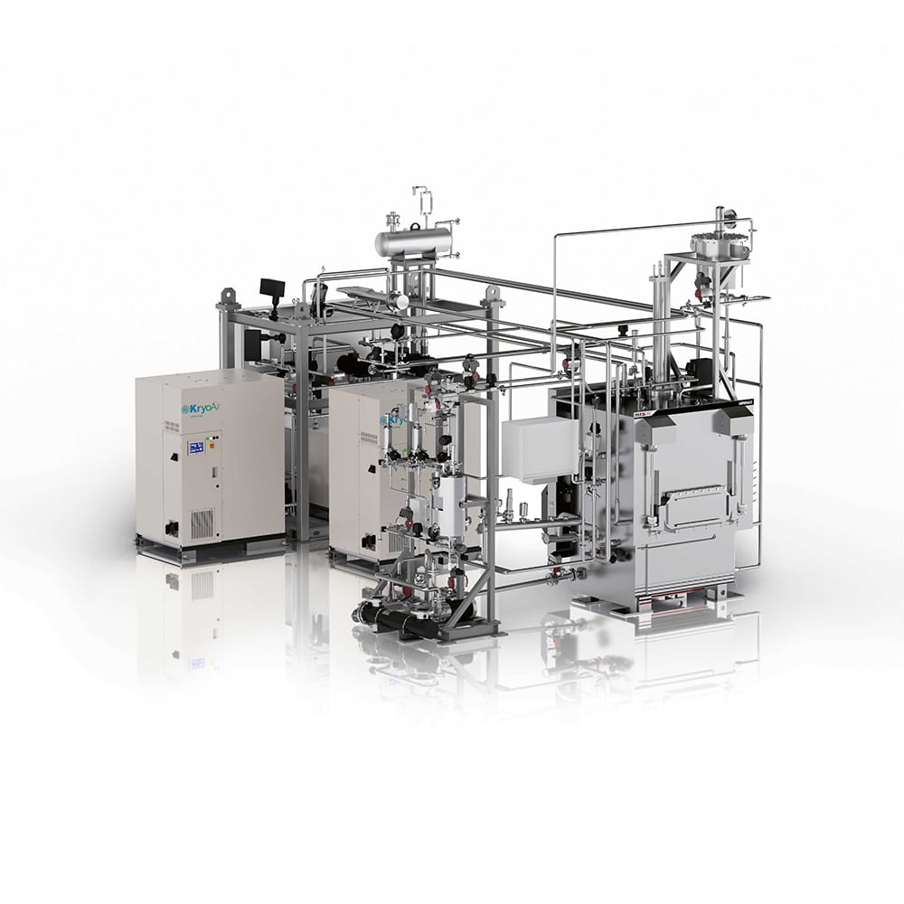 KRYOAIR is a new technology, 100% green refrigerant, using air as the refrigerant used in freeze dryers. The system is based on a series of compression/cooling/expansion steps of AIR, which can be cooled to a temperature as low as -100°C.