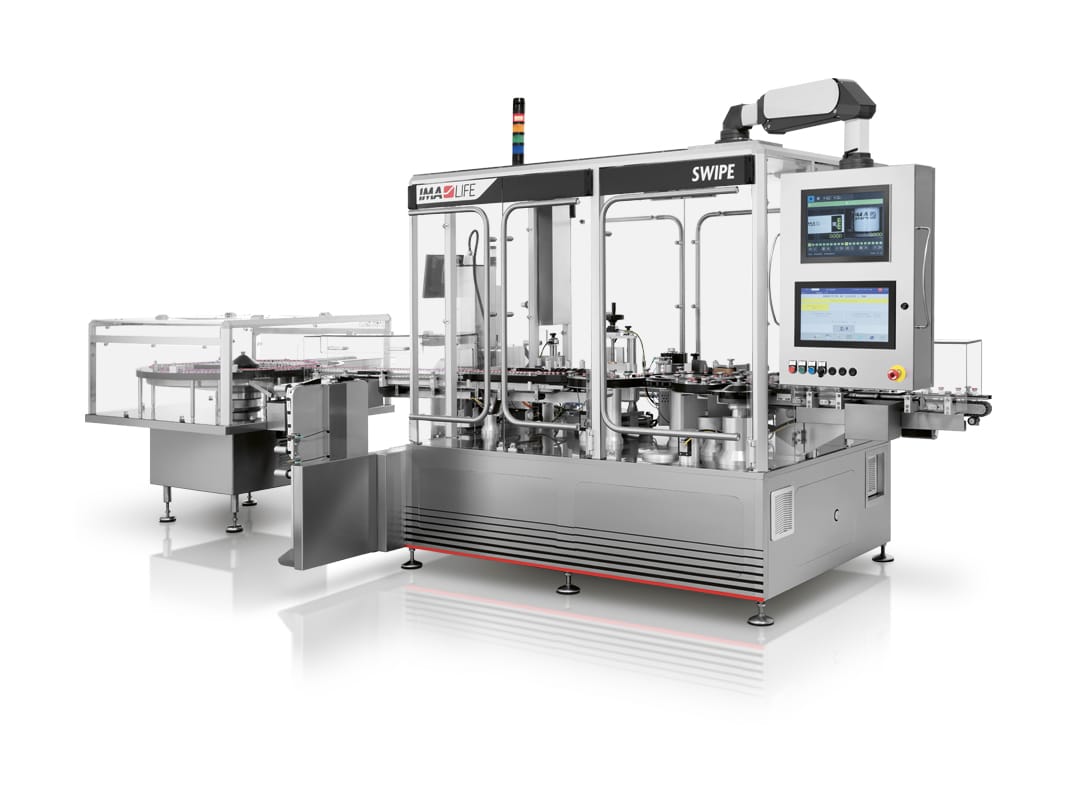 Handling vials, cartridges and ampoules, SWIPE uses a brushless motor to ensure maximum precision when applying paper or plastic labels at speeds of up to 800 containers per minute. SWIPE is also ready to implement a complete Track & Trace process with serialization and vision control capabilities, and meets regulatory requirements in compliance with GMP guidelines.