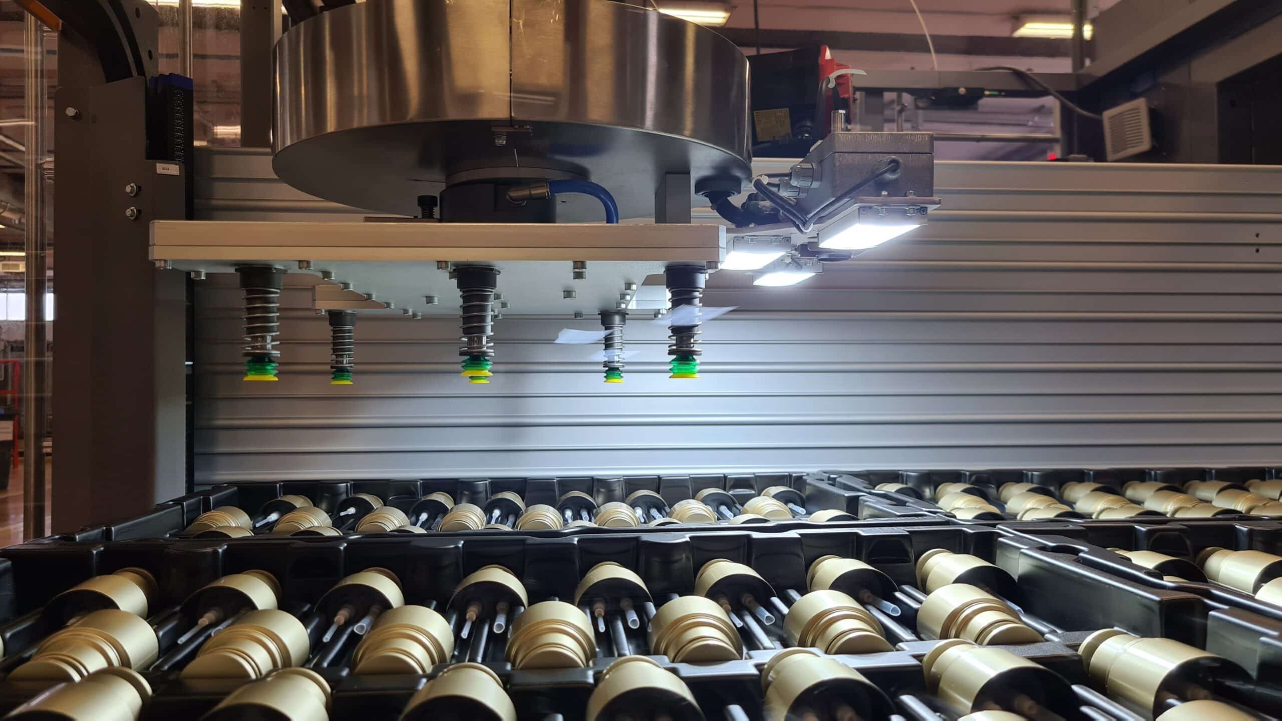 • PRODUCTION LINE OUTFEED: robotized tray loading system taking containers from the line.