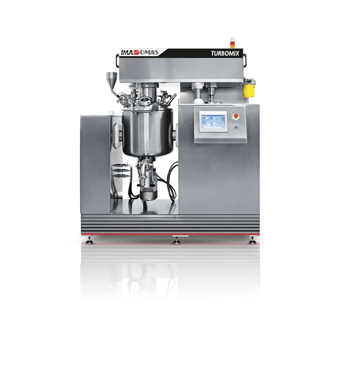 The TURBOMIX series offers advanced mixing and emulsifying capabilities, user high shear energy and vacuum conditions to create fine emulsions, resulting in smooth and homogeneous creams that meet the highest quality standards. This versatile machine is ideal for producing high-quality emulsions and mixtures, catering to a range of industries and applications. The machine is designed for flexibility in formulation and high efficiency in production.