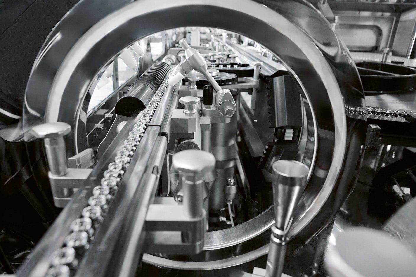 During the aseptic filling of dose containers with a drug, essential is preventing its contamination, thus minimising its exposure to environment, equipment, manipulation from operators, etc., until its sealing.