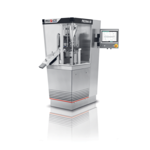 The Prexima 80 (IMA S.p.A., Bologna, Italy) rotary tablet press was used for the minitablet compression (MT1 and MT2). It was equipped with a mixed turret EU-B and EU-D, suitable for laboratory trials, consisting of EU-D dies and EU-D biconvex round multitip punches of 2 mm in diameter (24 tips per punch). The normal biplane tablets (NT) of a 6 mm diameter round shape were compressed using the same press and tablet press configuration.