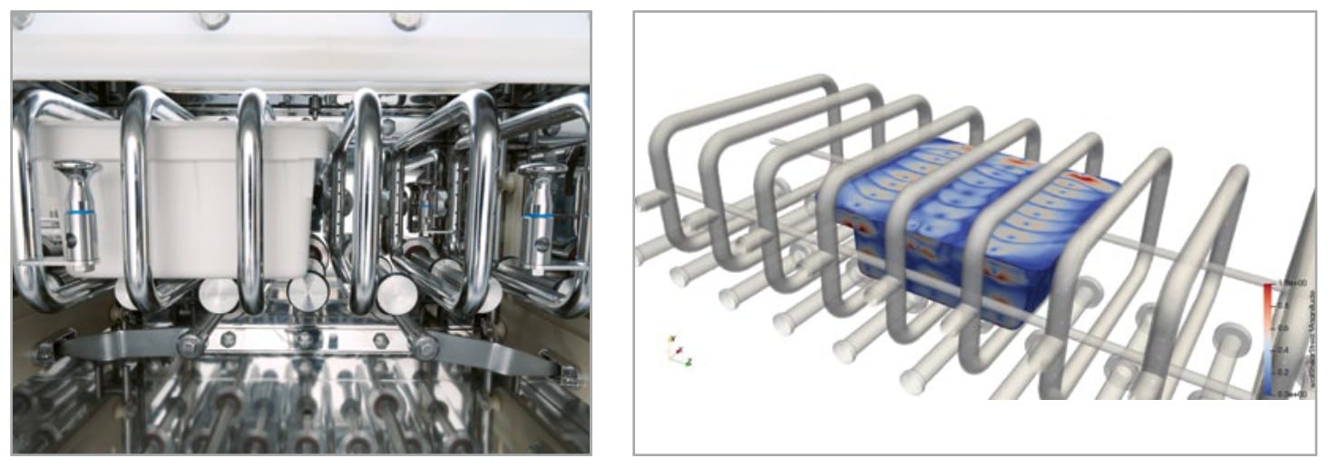 The primary objective was to replicate the strategic advantages of an E-beam tunnel by utilizing traditional hydrogen peroxide-based decontamination methods. IMA LIFE has successfully adapted an existing technology from food processing, where high-concentration vaporized hydrogen peroxide (VPHP) exceeding 8000 PPM is currently employed for the decontamination of bottles and pouches. By optimizing the combination of temperature, high concentration, and airflow distribution, it becomes feasible to achieve the 6-log decontamination in approximately 30 seconds.