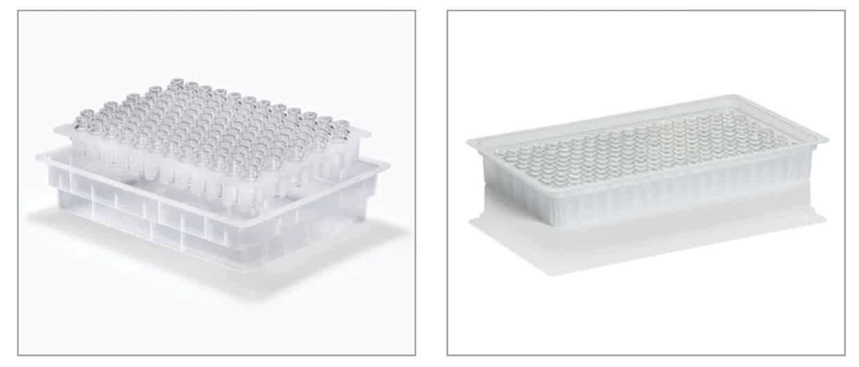 At the same time, the sector of primary containers managed as pre-sterilized materials is quickly expanding. Primary containers can be transported within the Grade A area through specific protective packaging, commonly referred to as “RTU tubs” or “RTU trays”. RTU tubs are equipped with primary containers inserted into “nests” and they are used for vials, syringes, and cartridges (ref. ISO 11040-7 “Packaging systems for sterilized subassembled syringes ready for filling”). Trays are similar but are typically dedicated to vials and do not have nests for separating the containers.