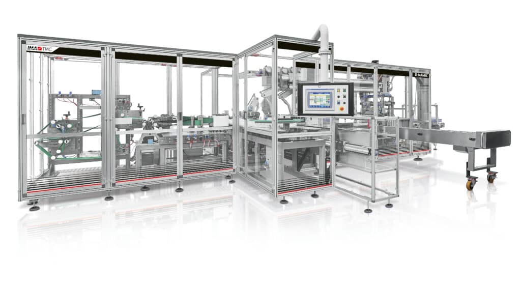 D-NAMIC is IMA TMC stacker & bagger for hygiene products, packed in pre-formed bags.